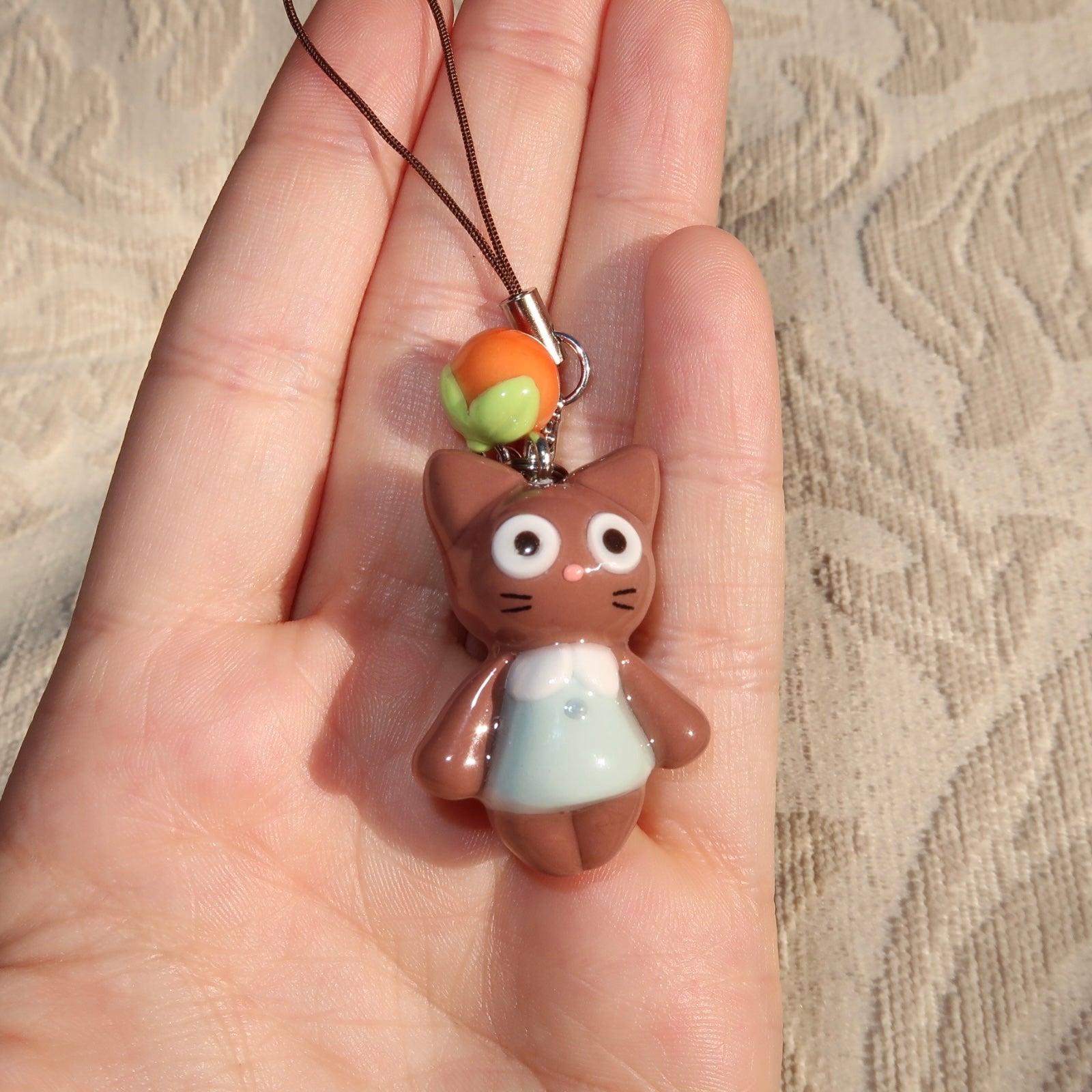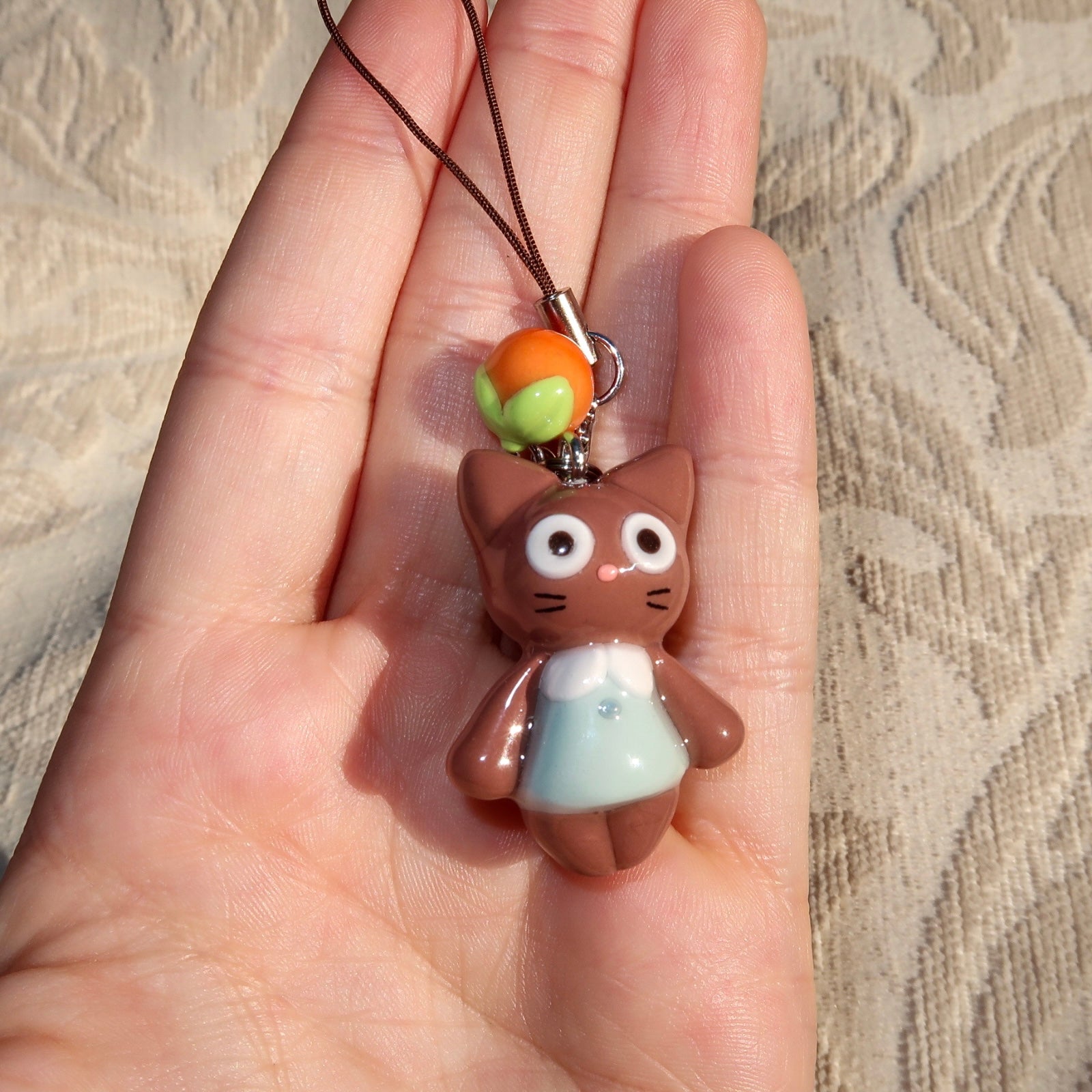 Bon is an adorable companion to take with you everywhere. She's perfect as a keychain, a bag charm, or wherever you need a cute accessory. She comes with her complimentary charm, matching sticker, and a choice of charm sting or keychain attachment! Every Bon is a unique, original design hand sculpted from polymer clay, and protected with a coat of UV resin.