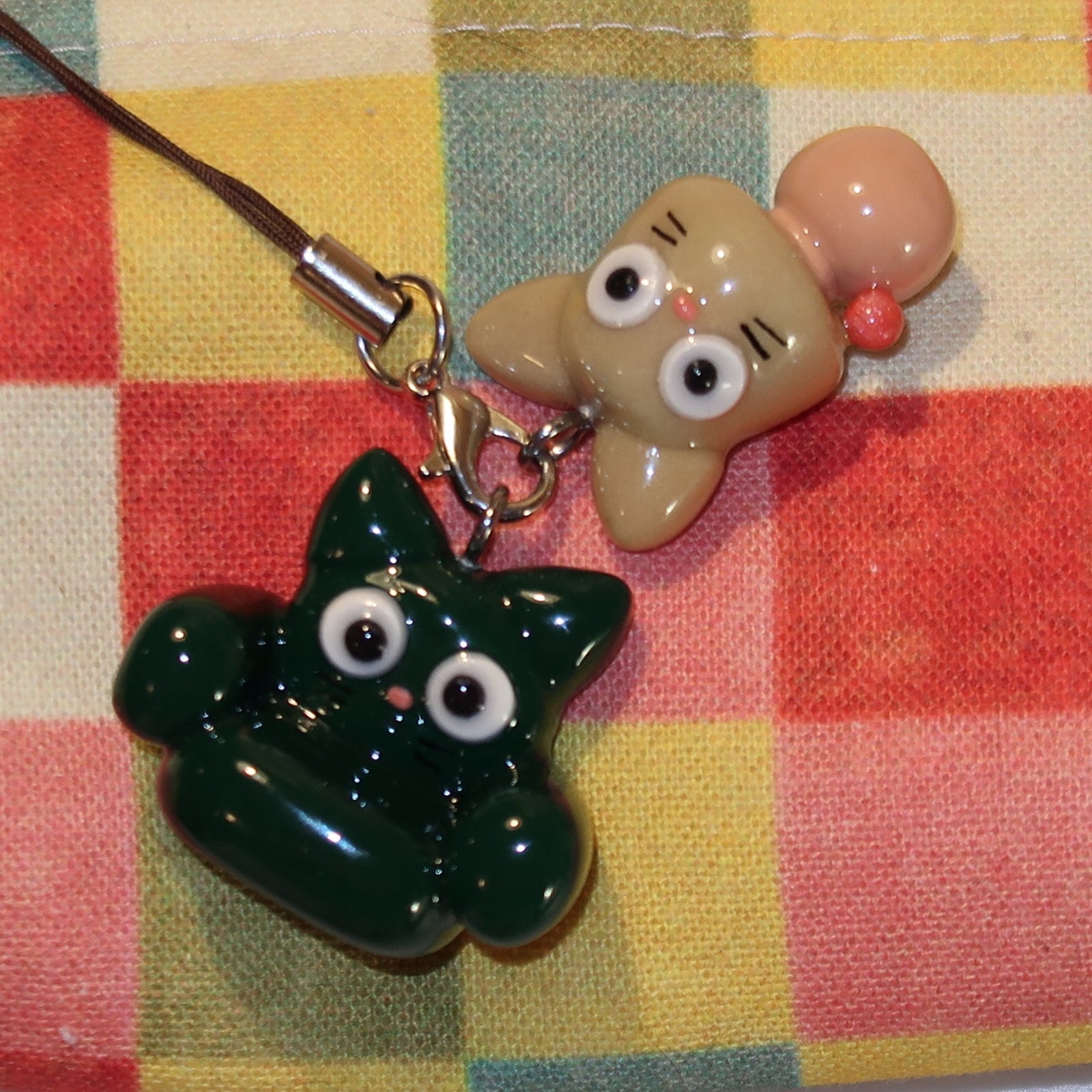 Bon is an adorable companion to take with you everywhere. She's perfect as a keychain, a bag charm, or wherever you need a cute accessory. She comes with a matching sticker, and a choice of charm sting or keychain attachment! Every Bon is a unique, original design hand sculpted from polymer clay, and protected with a coat of UV resin.