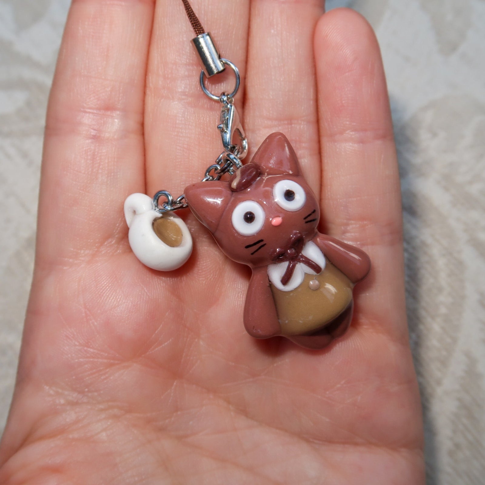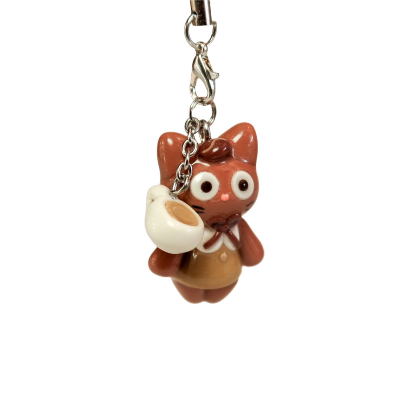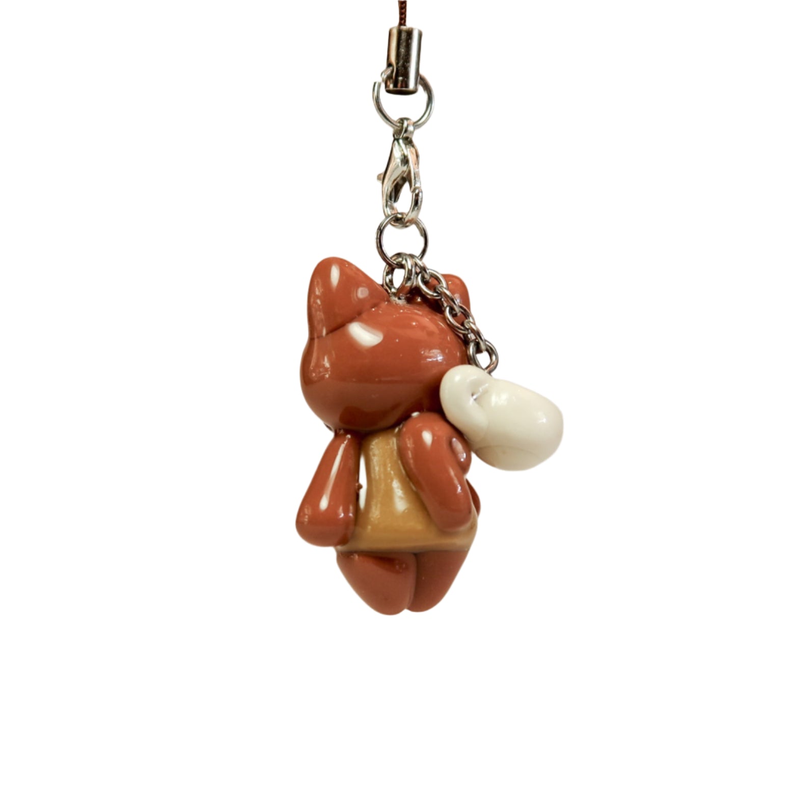 Bon is an adorable companion to take with you everywhere. She's perfect as a keychain, a bag charm, or wherever you need a cute accessory. She comes with her complimentary charm, matching sticker, and a choice of charm sting or keychain attachment! Every Bon is a unique, original design hand sculpted from polymer clay, and protected with a coat of UV resin.