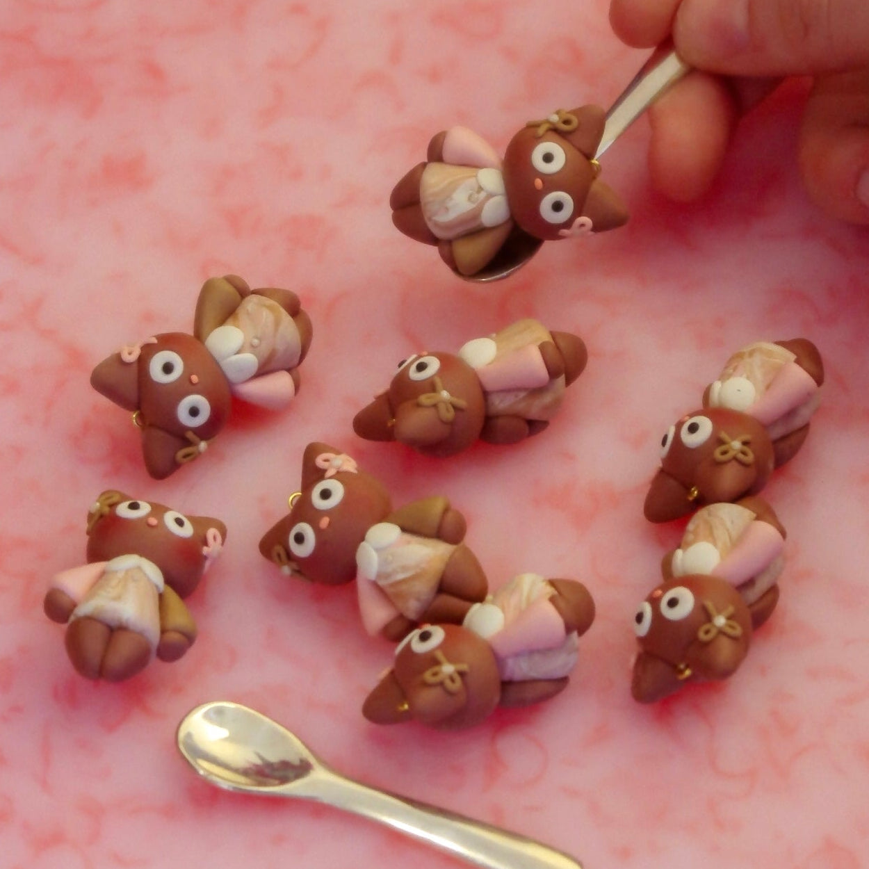 Bon is an adorable companion to take with you everywhere. She's perfect as a keychain, a bag charm, or wherever you need a cute accessory. She comes with her complimentary charm, matching sticker, and a choice of charm sting or keychain attachment! Every Bon is a unique, original design hand sculpted from polymer clay, and protected with a coat of UV resin.